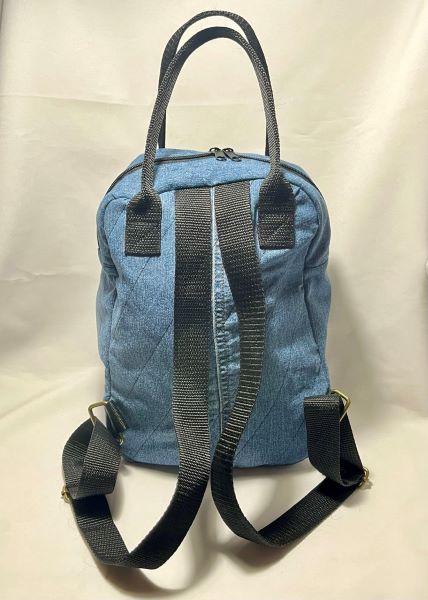 Fabricada a partir de jeans en desuso y retazos de telas nuevas, esta mochila artesanal es un accesorio sostenible que ayuda a reducir residuos textiles mientras te acompaña en tu rutina diaria.